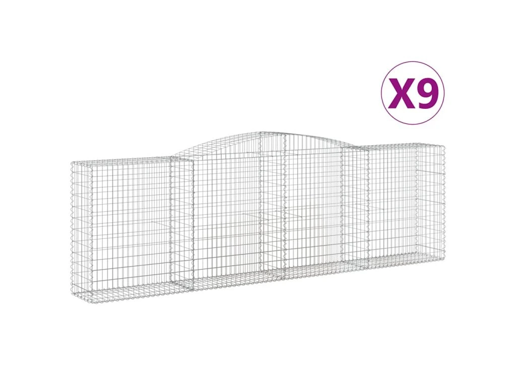Klenuté gabionové koše 9 ks 400x50x120/140cm pozinkované železo 3147016