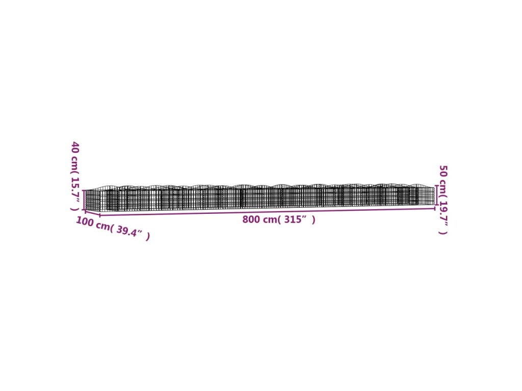 Klenutý gabion vyvýšený záhon 800x100x50 cm pozinkované železo 153553