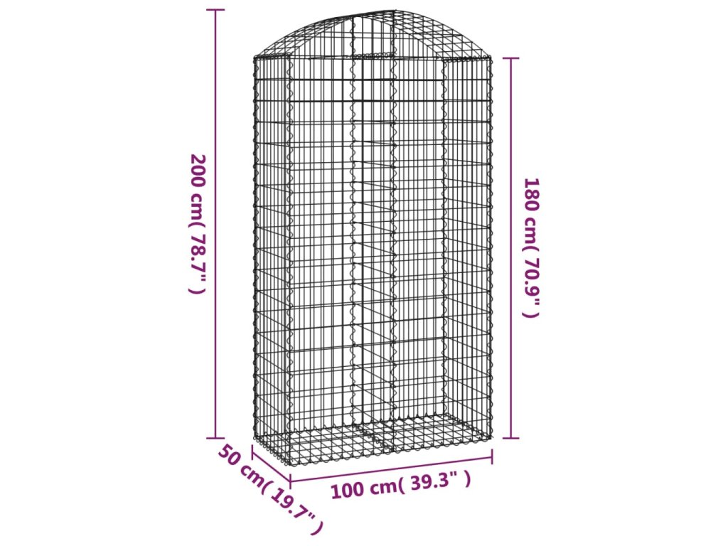 Klenutý gabionový koš 100 x 50 x 180/200 cm pozinkované železo 153439