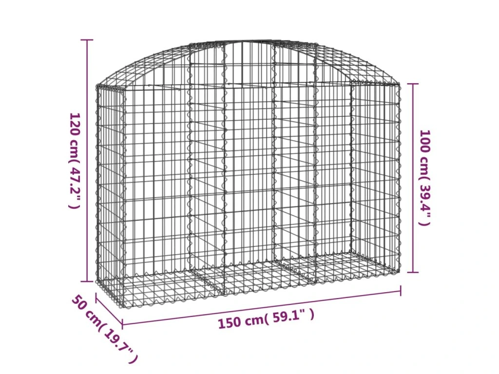 - Stabilní konstrukce: Klenutá gabionová klec je určená k naplnění kamením nebo štěrkem, aby byla dostatečně stabilní.