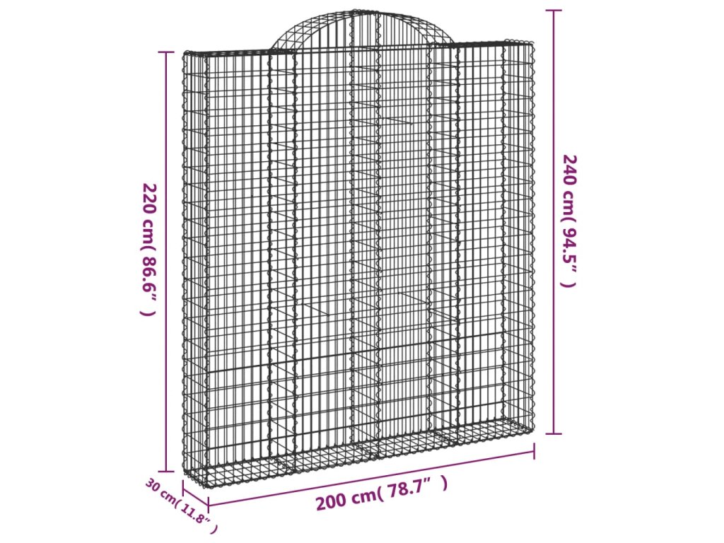 Klenutý gabionový koš 200 x 30 x 220/240 cm pozinkované železo 153491