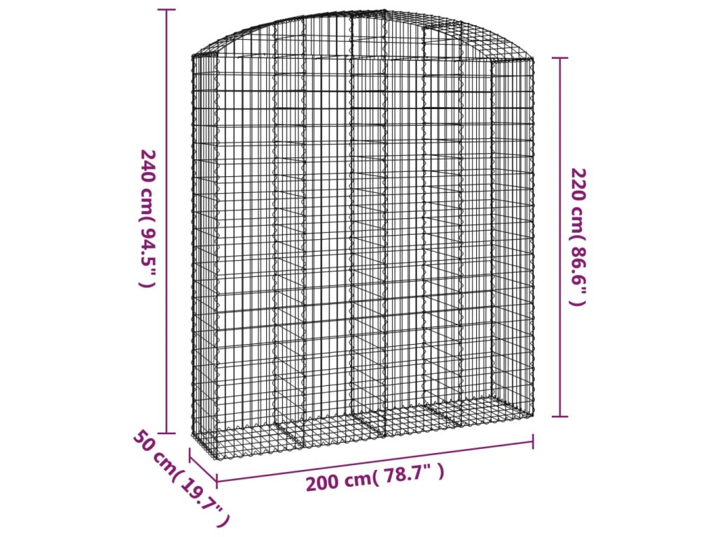 Klenutý gabionový koš 200 x 50 x 220/240 cm pozinkované železo 153481
