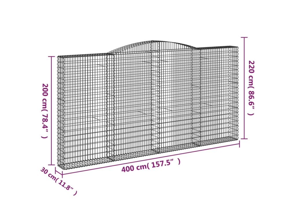 Klenutý gabionový koš 400 x 30 x 200/220 cm pozinkované železo 153530