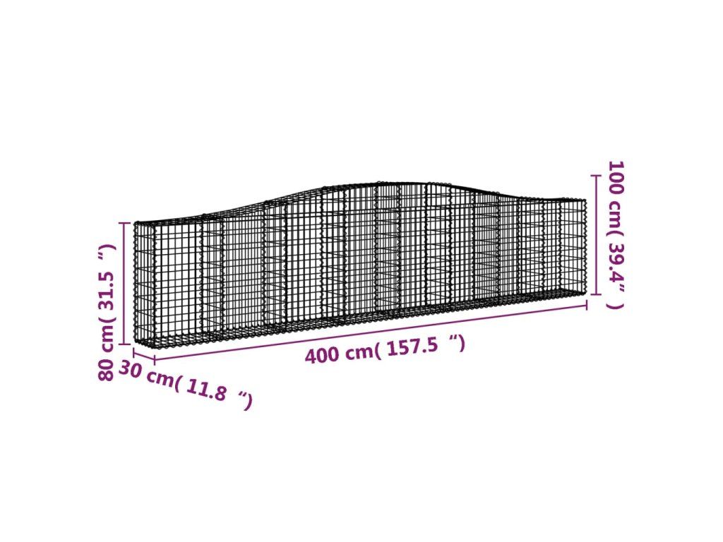 Klenutý gabionový koš 400 x 30 x 80/100 cm pozinkované železo 153404