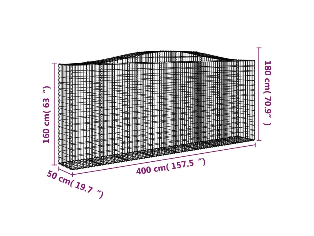 Klenutý gabionový koš 400 x 50 x 160/180 cm pozinkované železo 153418