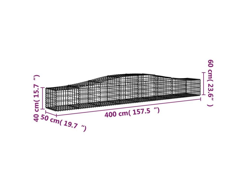 Klenutý gabionový koš 400 x 50 x 40/60 cm pozinkované železo 153412