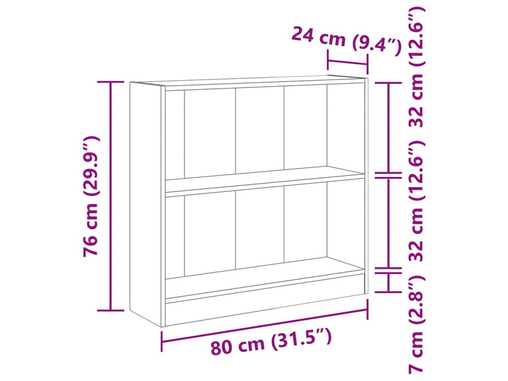 Knihovna je zhotovená z kvalitní dřevotřísky, je tedy mimořádně odolná a stabilní a vydrží vám sloužit po dlouhá léta. Její dvoupatrový design a pevná horní deska nabízí spoustu místa, kam si můžete uložit nejrůznější věci, jako jsou knížky, složky, kolekce vašich her, CD nebo DVD, či dekorativní předměty. Jedná se o všestranný regál, který vám doma poskytne ideální úložné řešení. Lze ho rovněž využít jako odkládací skříňku.