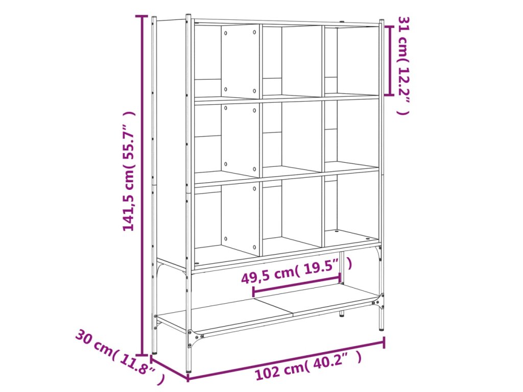 - Dostatek úložného prostoru: Knihovna je navržena s 9 otevřenými přihrádkami a 1 spodní poličkou, takže poskytuje dostatek místa, kde si můžete uschovat a vystavit vaše knihy, časopisy, dekorativní předměty, zarámované fotografie, suvenýry z prázdnin a trofeje, a zároveň zkrášlí váš domov.