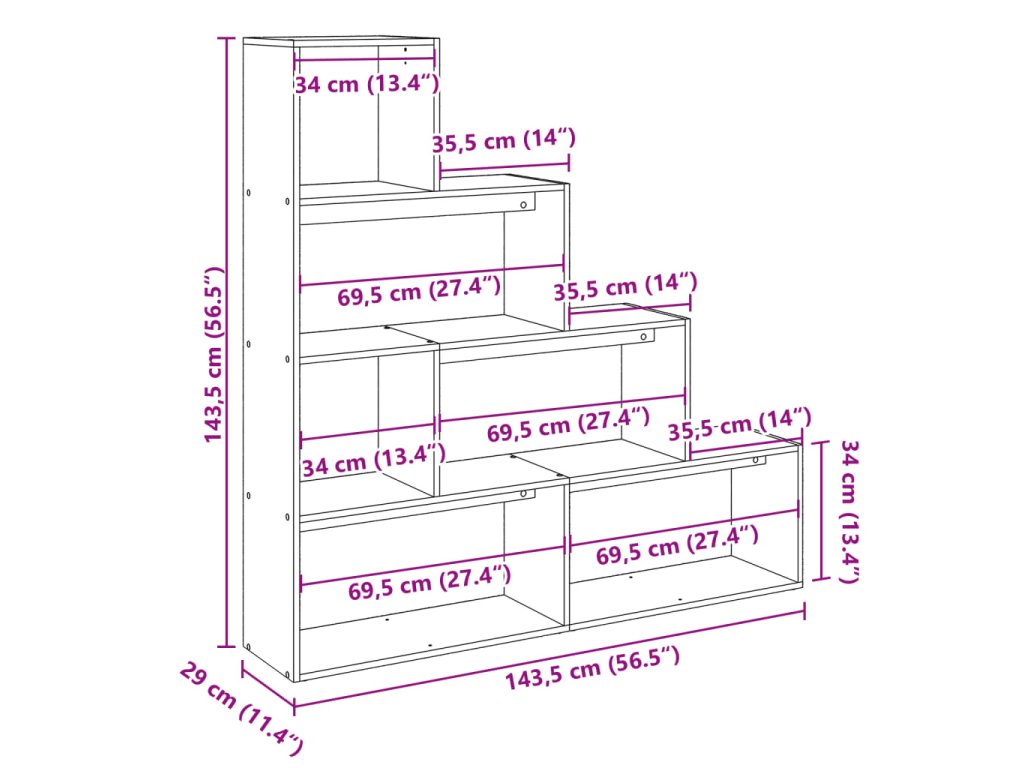 Knihovna/dělící stěna 4patrová dub sonoma 143,5x29x143,5 cm 857996