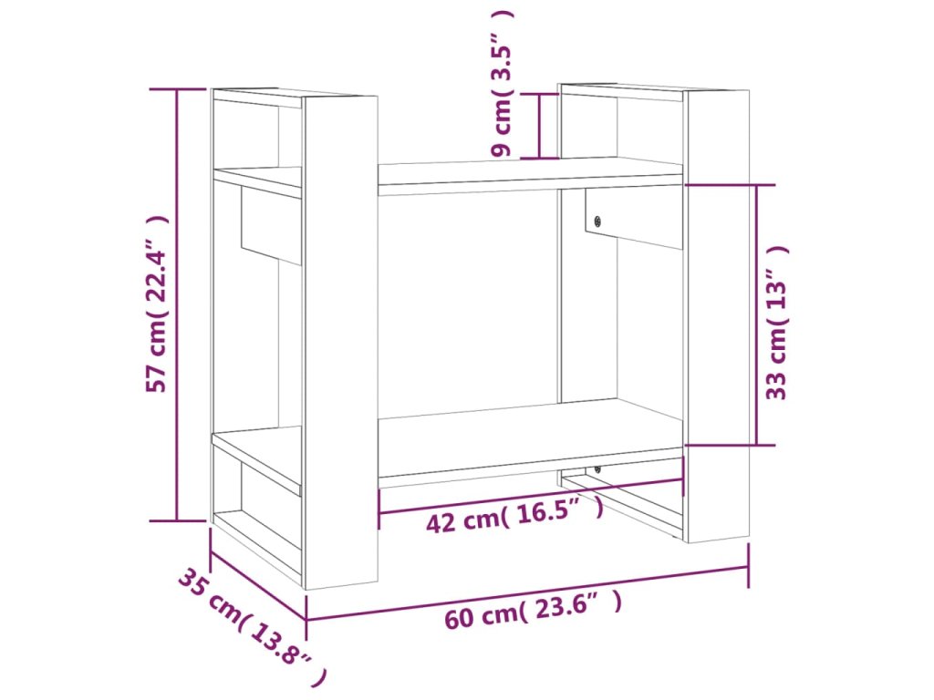 Knihovna / dělicí stěna 60 x 35 x 57 cm masivní borovice 813874