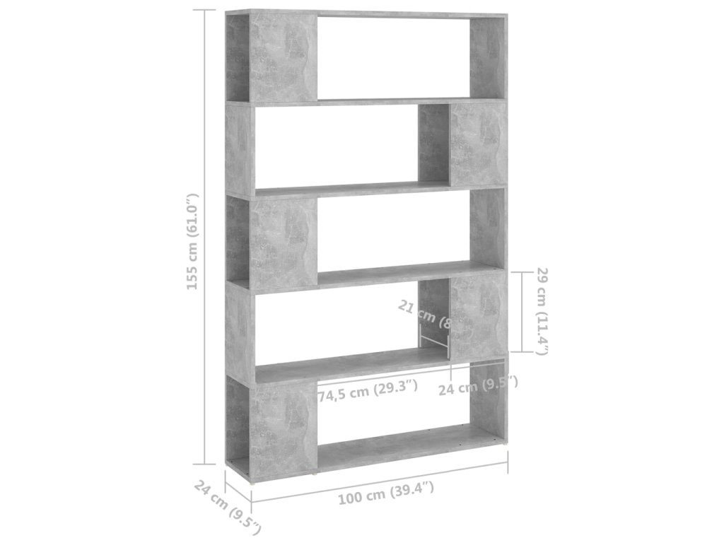 Knihovna / dělicí stěna betonově šedá 100x24x155 cm kompozit 809201