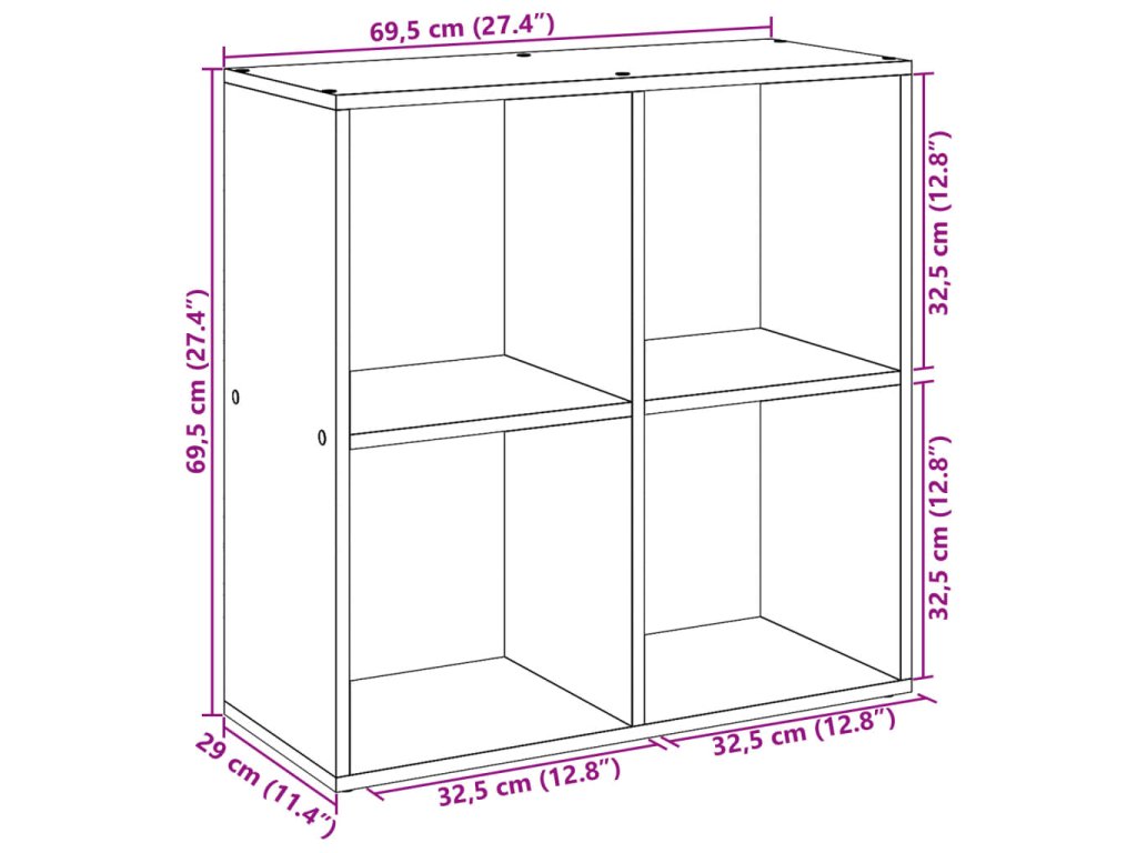 - Dostatek úložného prostoru: Regál na knihy má čtyři krychlové přihrádky, které jsou ideální pro uspořádání knih, dekorací a dalších předmětů v domácnosti.