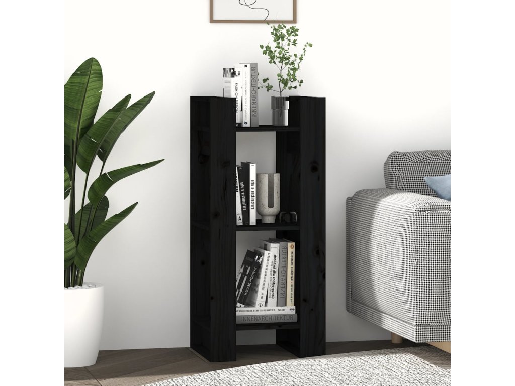 Knihovna / dělicí stěna černá 41 x 35 x 91 cm masivní borovice 813863