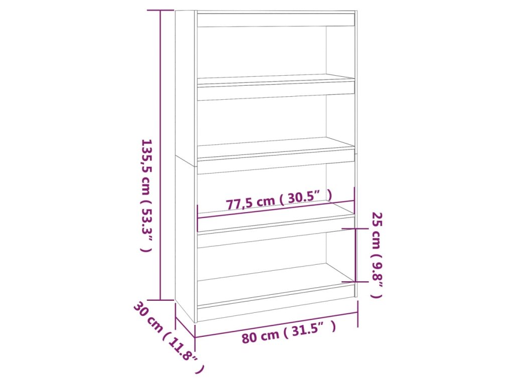 Knihovna / dělicí stěna medově hnědá 80x30x135,5 cm borovice 808196