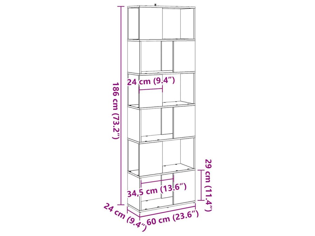 Knihovna / dělicí stěna old wood 60 x 24 x 186 cm 856730