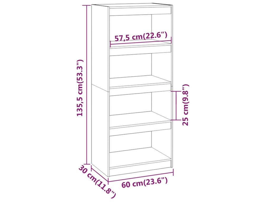 Knihovna / dělicí stěna šedá 60 x 30 x 135,5 cm masivní borovice 808170