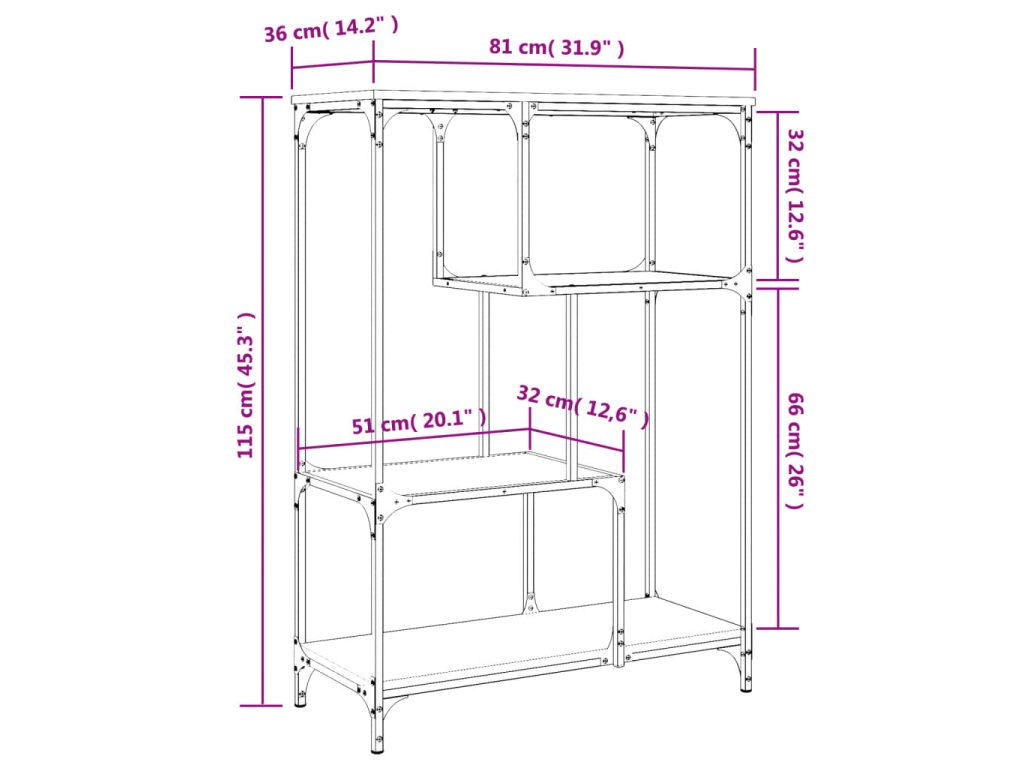 Knihovna dub sonoma 81 x 36 x 115 cm kompozitní dřevo a ocel 835405