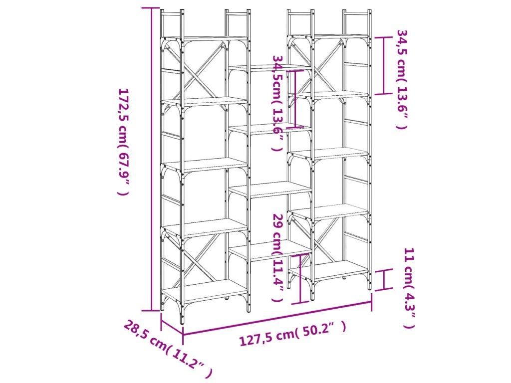 Knihovna hnědý dub 127,5 x 28,5 x 172,5 cm kompozitní dřevo 838872