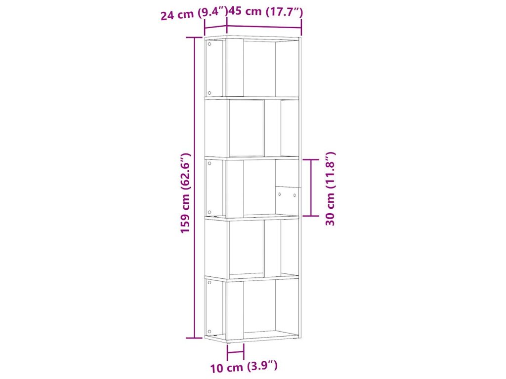 Knihovna old wood 45 x 24 x 159 cm kompozitní dřevo 855784