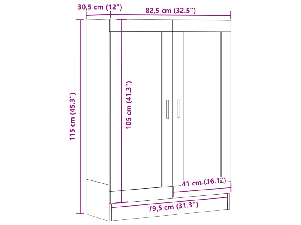 - Rozměry: 82,5 x 30,5 x 115 cm (Š x H x V)