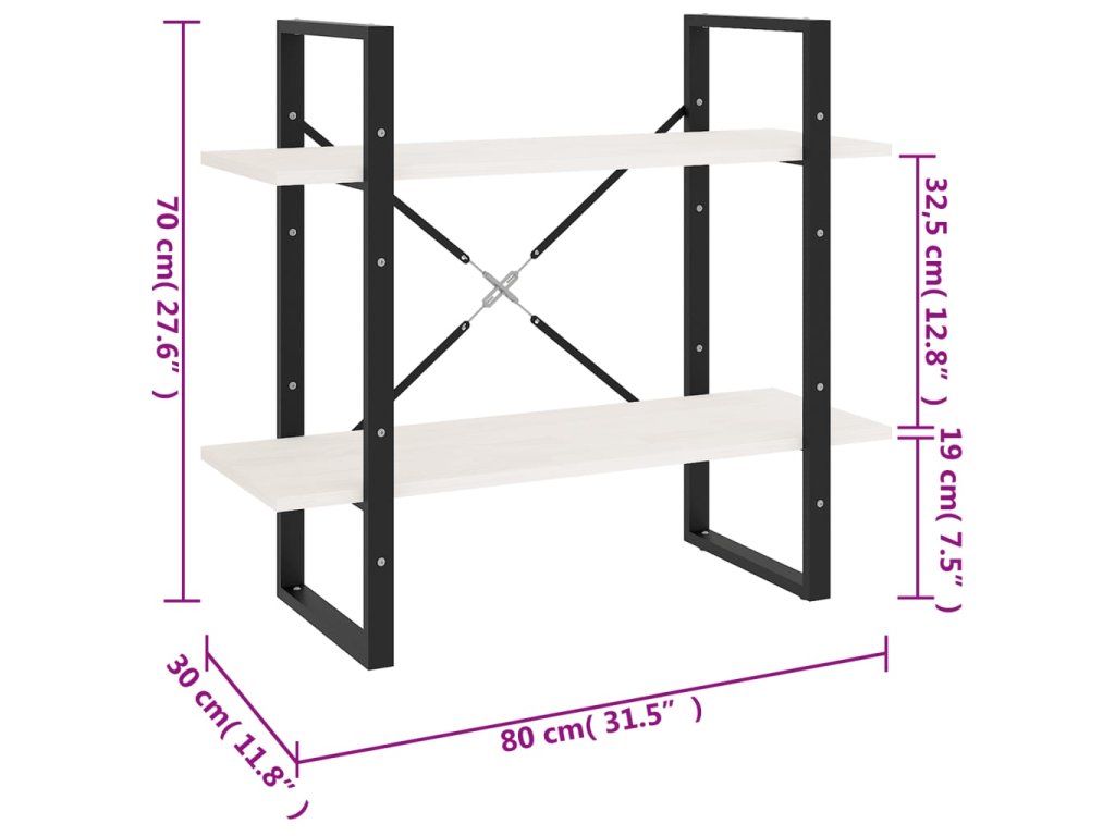 Knihovna se 2 policemi bílá 80 x 30 x 70 cm masivní borovice 806453