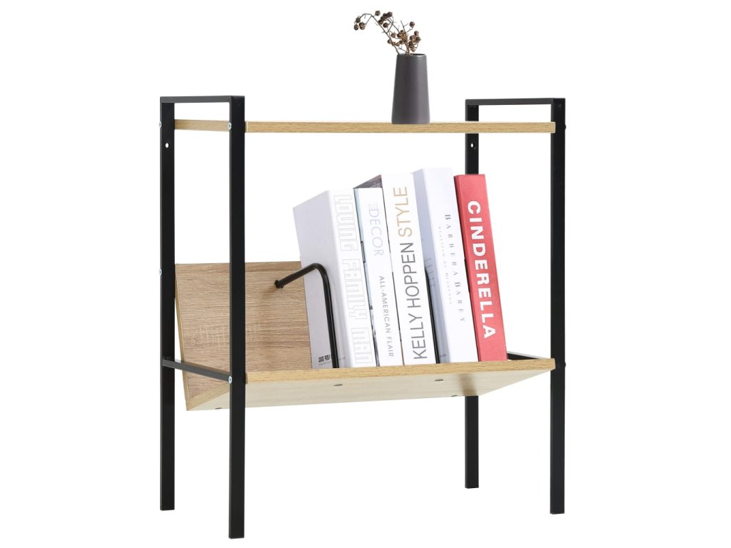 Volně stojící regál je vyrobený z kompozitního dřeva, lze jej tedy snadno čistit vlhkým hadříkem. Robustní ocelová konstrukce nepodléhá rzi a působí industriálním dojmem. Celá knihovna má kompaktní design, který vám umožní maximálně využít omezený prostor. Dvě police nabízí spoustu místa, kde si můžete uložit a vystavit svou sbírku knih, květiny, CD, DVD a nejrůznější dekorativní předměty.