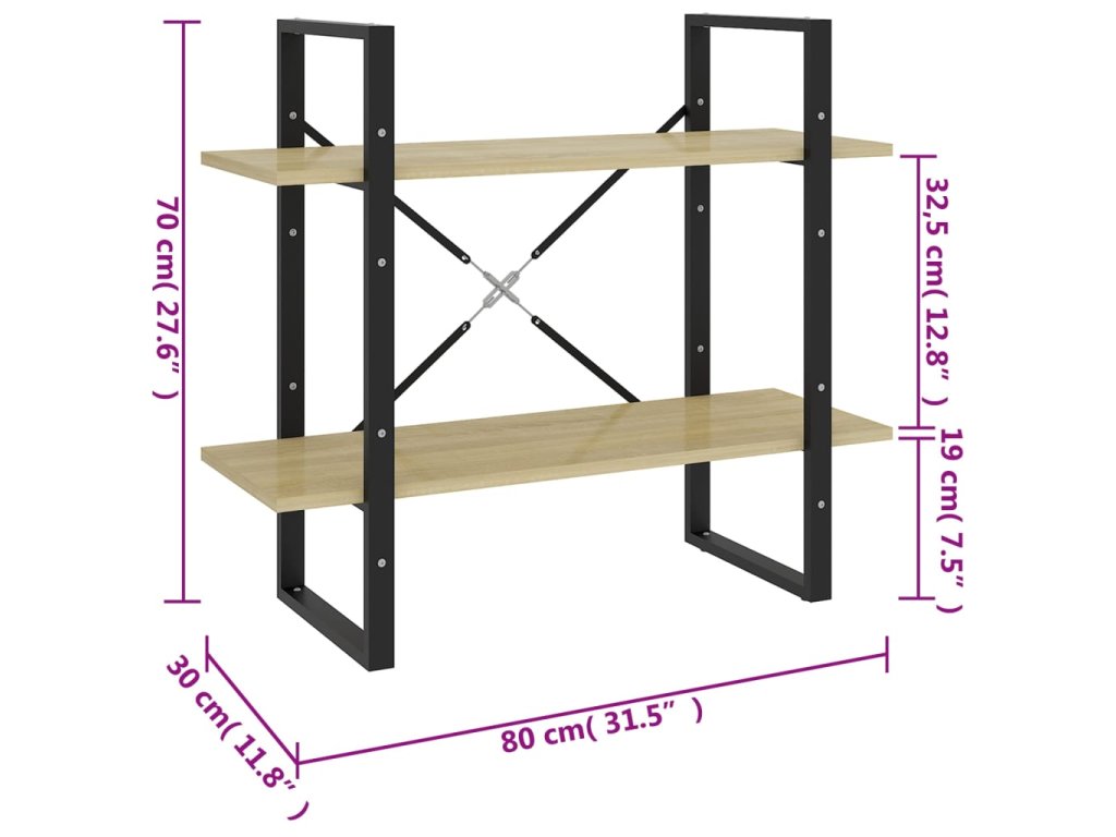 Knihovna se 2 policemi dub sonoma 80x30x70 cm kompozitní dřevo 806450