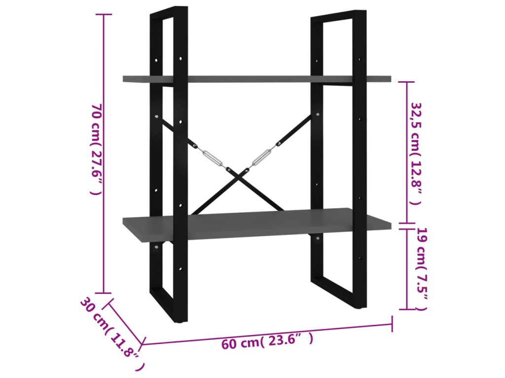 Knihovna se 2 policemi šedá 60 x 30 x 70 cm kompozitní dřevo 806429