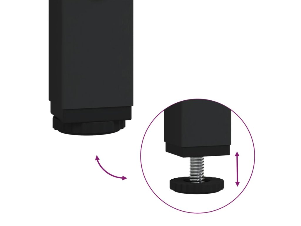 - Nastavitelné nožičky: Nastavitelné nožičky s plastovými podložkami udržují knihovnu v rovnováze na nerovném povrchu a zvyšují její stabilitu.