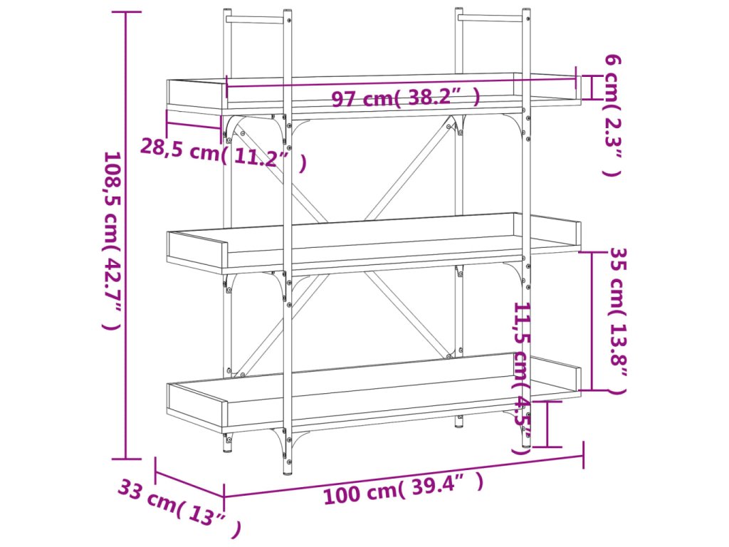 Knihovna se 3 policemi šedá sonoma 100 x 33 x 108,5 cm kompozit 837690