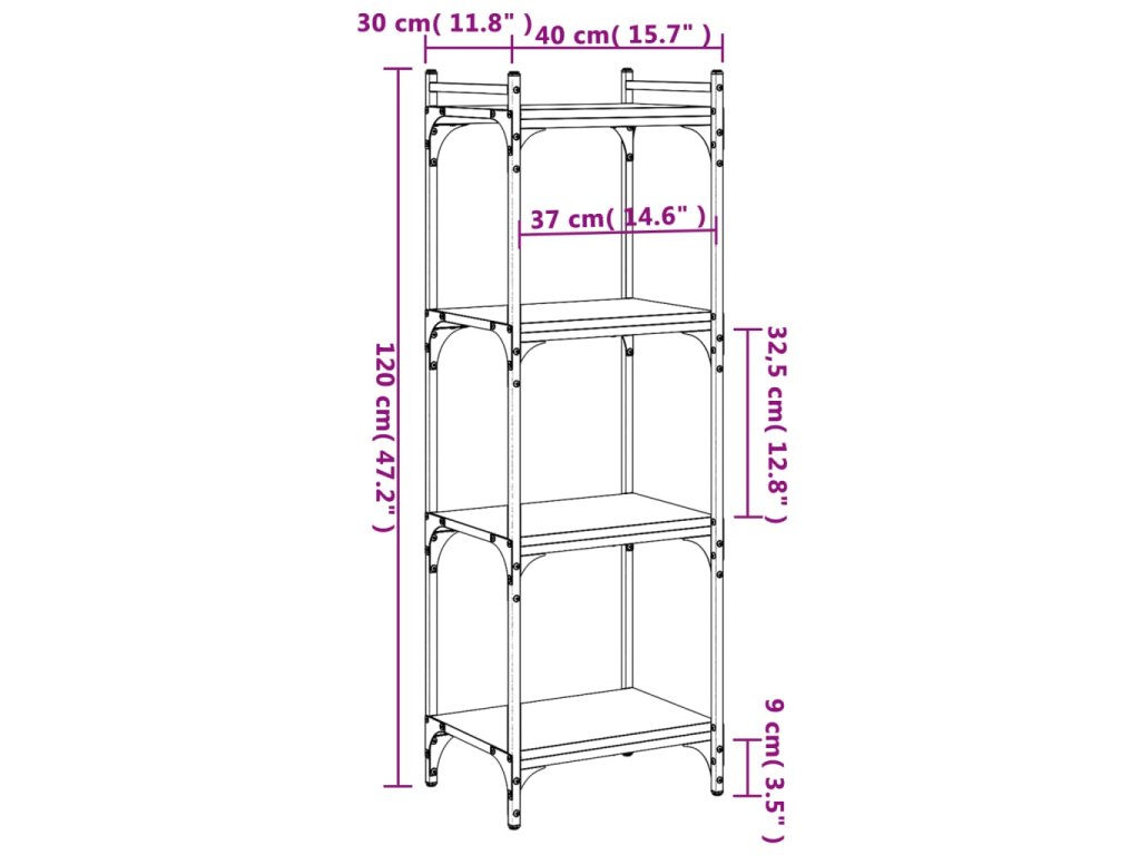 Knihovna se 4 policemi hnědý dub 40x30x120 cm kompozitní dřevo 837636