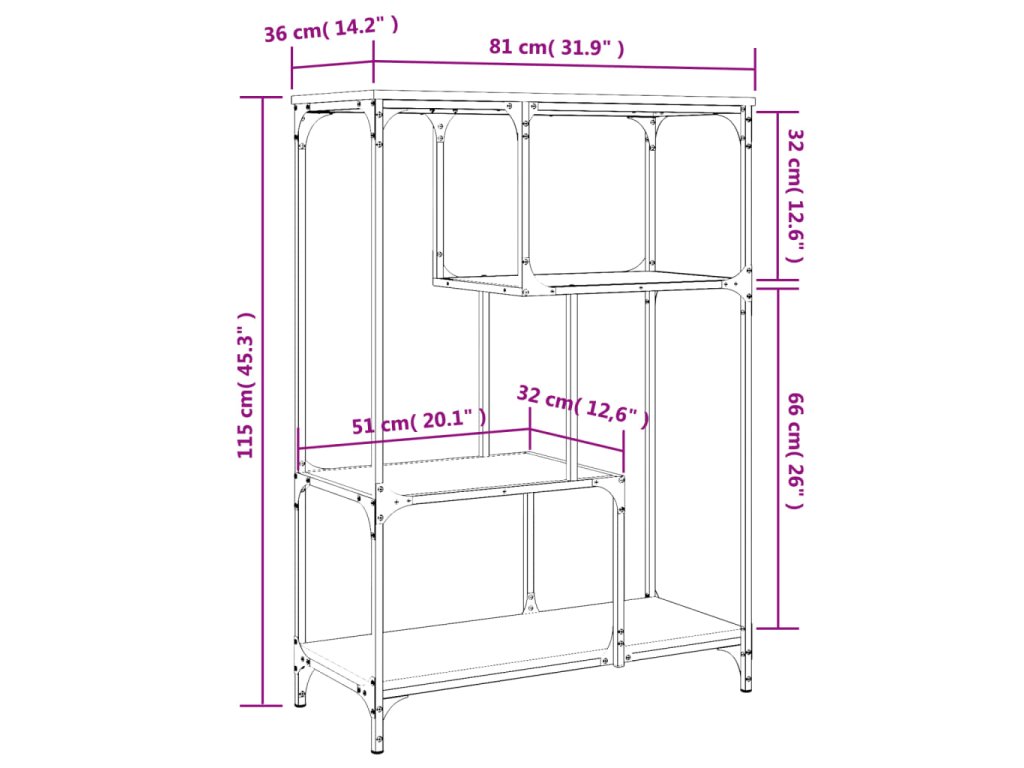 Knihovna šedá sonoma 81 x 36 x 115 cm kompozitní dřevo a ocel 835407