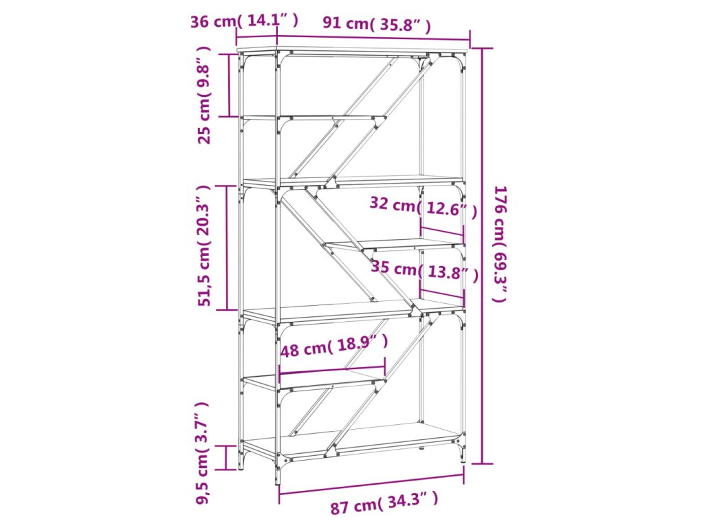 Knihovna šedá sonoma 91 x 36 x 176 cm kompozitní dřevo a ocel 835417