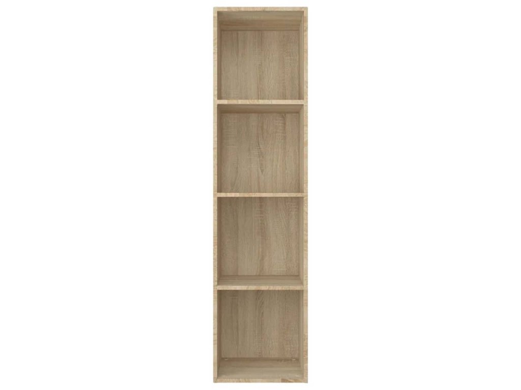 Knihovna je vyrobena z kompozitního dřeva, které zajišťuje její robustnost, odolnost a dlouhou životnost. Čtyři přihrádky poskytují spoustu prostoru pro přehledné ukládání vašich časopisů, knih, DVD a multimediálních zařízení, které chcete mít po ruce. Tento regál na knihy, který díky jeho všestrannému charakteru můžete rovněž umístit horizontálně a využít jako TV skříňku, je ideálním doplňkem do vašeho bydlení.