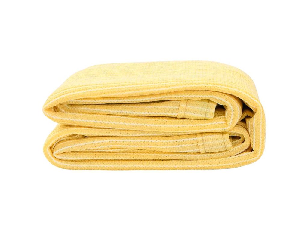Koberec do stanu je vyrobený z polyethylenu s vysokou hustotou, který je příjemně prodyšný a propouští vodu. V každém ze svých čtyř rohů má zabudované očko a další dvě očka se nachází uprostřed dlouhých stran pro snazší upevnění. Venkovní koberec snadno vyčistíte vodou. A je-li to třeba, můžete ho také lehce seříznout na požadovanou velikost.