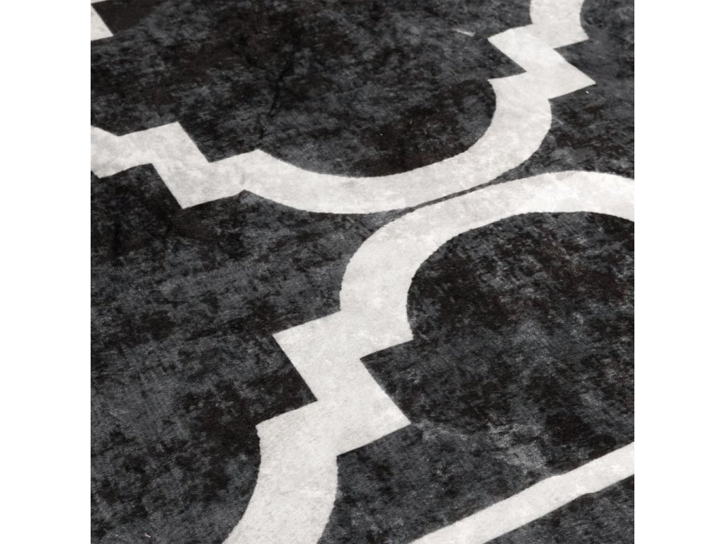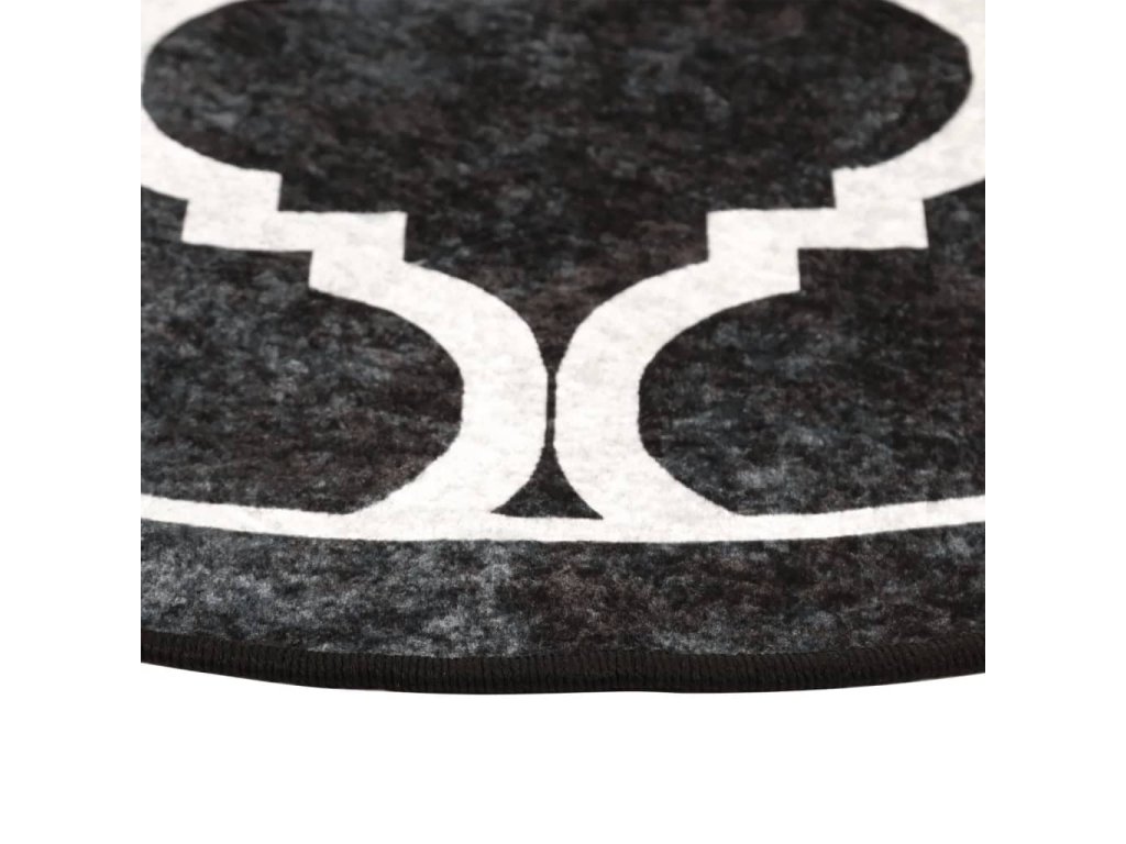 Koberec pratelný černý a bílý Ø 120 cm protiskluzový 136608