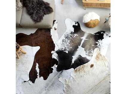 Kusový koberec z pravé kravské kůže je také velmi všestranný. Pokud kůži přehodíte přes křeslo, dodáte mu novou texturu, a zároveň tak snadno vznikne zajímavý designový efekt. Podobně originálním dojmem zapůsobí i zavěšená na zdi.