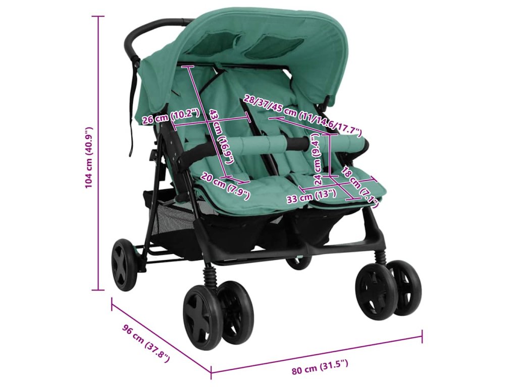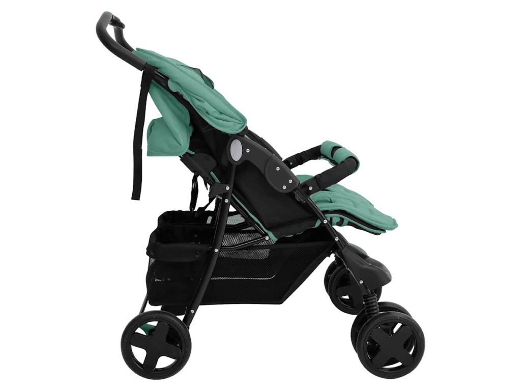 Kočárek pro dvojčata zelený ocel 10346