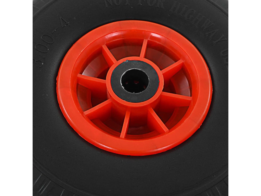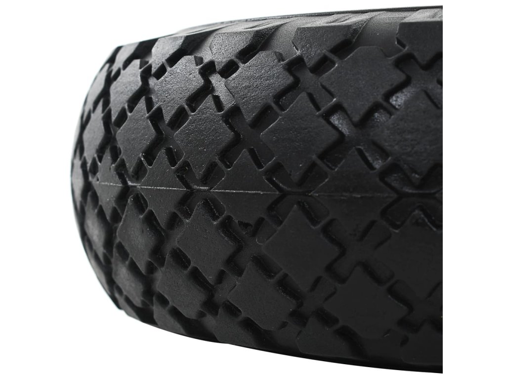 Solidní pneumatiky jsou vyrobeny z odolného, otěruvzdorného PU elastomeru a mají speciálně designovaný vzorek, který zvyšuje přilnavost k povrchu při vyšších rychlostech. Ráfky kol jsou vyrobeny z robustního plastu. Náhradní kolečka k vozíku mají univerzální velikost a lze je snadno instalovat do rudlů, ručních vozíků apod.