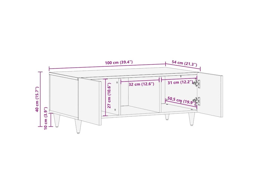 Konferenční stolek 100 x 54 x 40 cm masivní mangovníkové dřevo 4018676