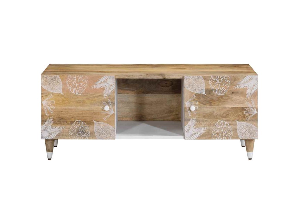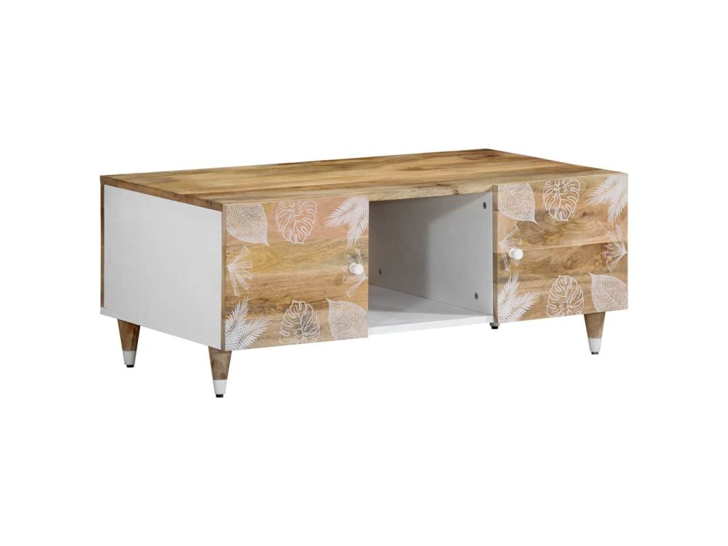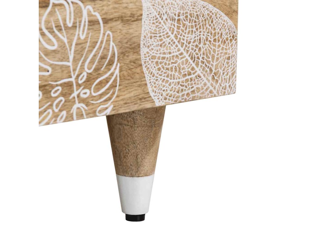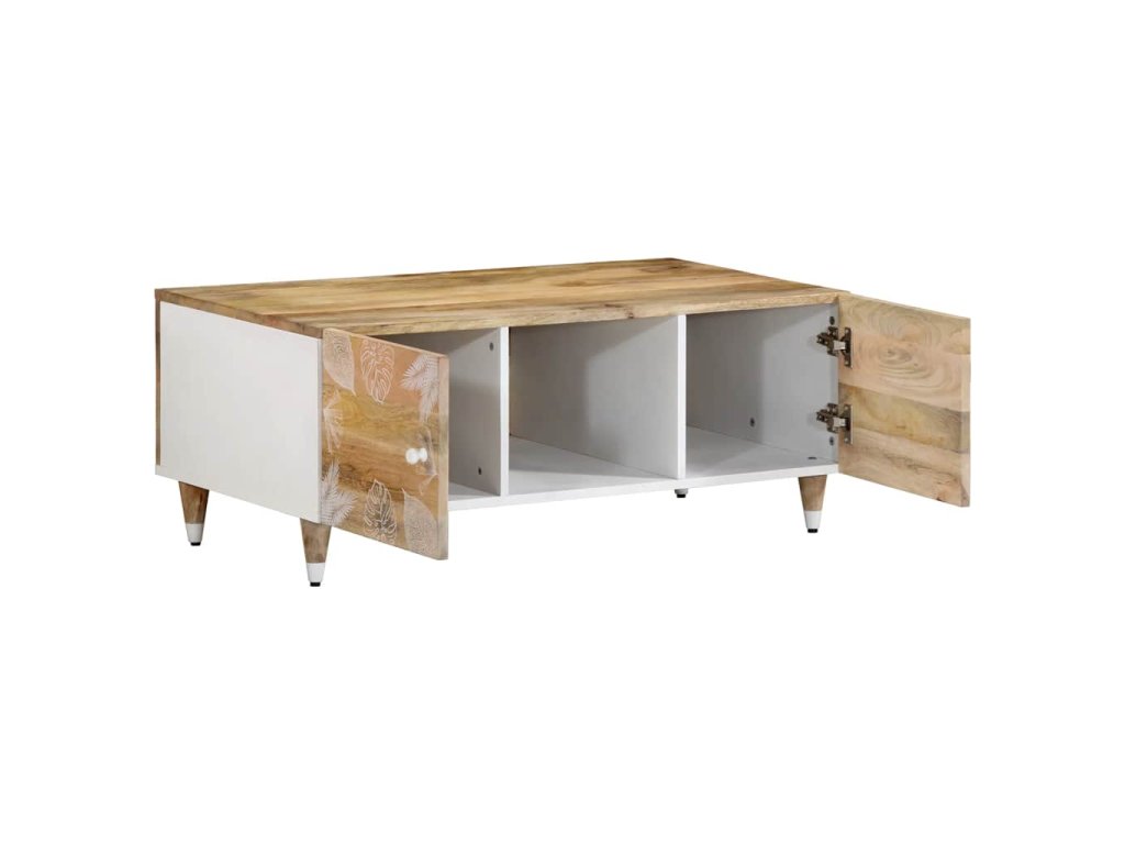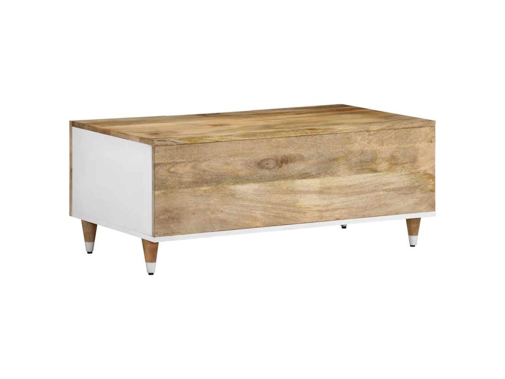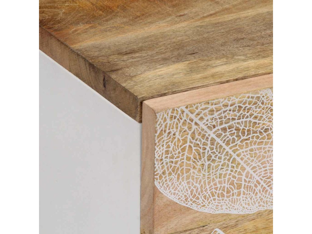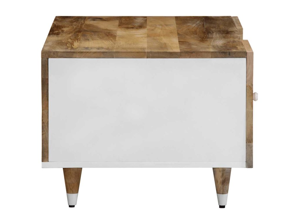 - Materiál: Přírodní mango s bílým lakem, kompozitní dřevo, kov