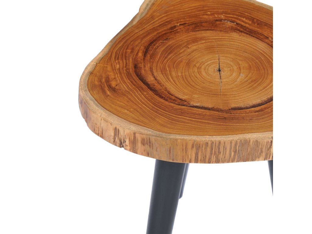 Stolní deska je ručně vyrobená a zručné řemeslné zpracování zdůrazňuje luxusní vzhled stolku. Nábytek je zhotovený z extrémně odolného teakového tvrdého dřeva, které již prošlo procesem smršťování, bylo uměle vysušené a poté jemně a do hladka obroušené. Teakové dřevo je proslulé svou výjimečnou pevností a klimatickou odolností. Jedná se tedy o skvělou volbu, pokud si chcete pořídit nábytek, který vám bude sloužit dlouhá léta. Základnu stolku tvoří odolné mangovníkové dřevo s černým nátěrem. Sestavení je velice snadné.