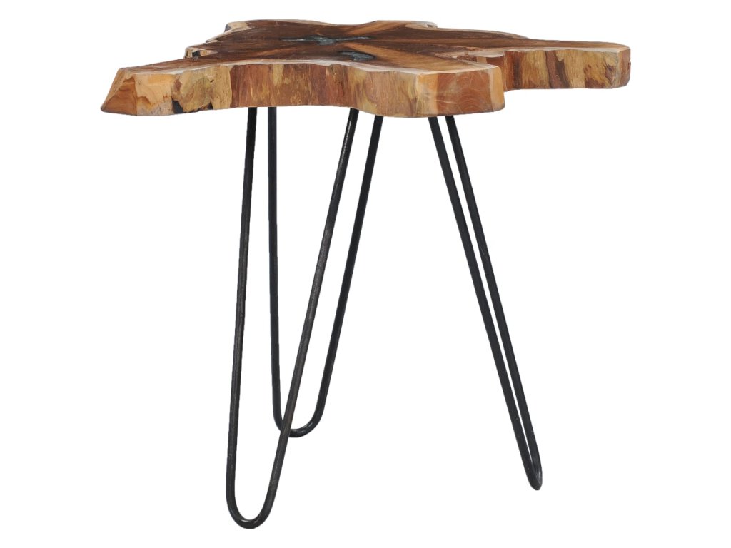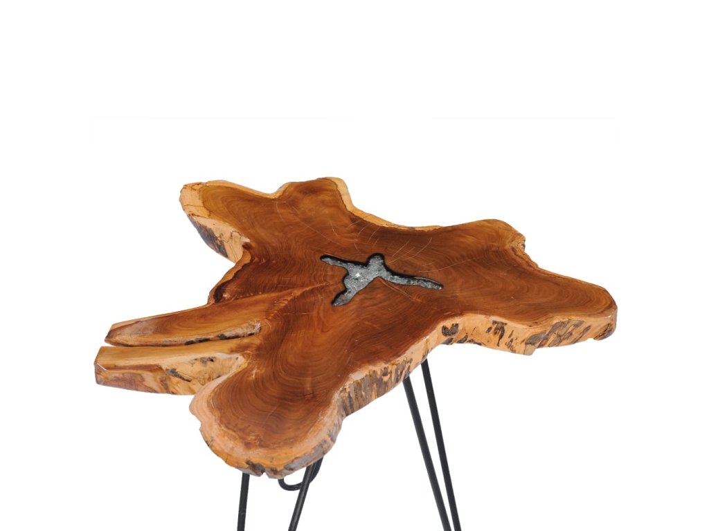 Tento jedinečný konferenční stolek je vyroben z masivního teakového dřeva se zdobením z průhledného polyresinu. Vyzařuje rustikální kouzlo a zaručeně zaujme na první pohled. Jeho nevšední stolní deska nabízí stabilní a pevnou plochu, kam si můžete odkládat své nápoje a vystavovat vázy, mísy s ovocem či různé ornamenty. Stolní deska je zhotovená z pravého kořene teakového stromu, jedná se tedy o výrazný dekorativní prvek pro vaše bydlení.