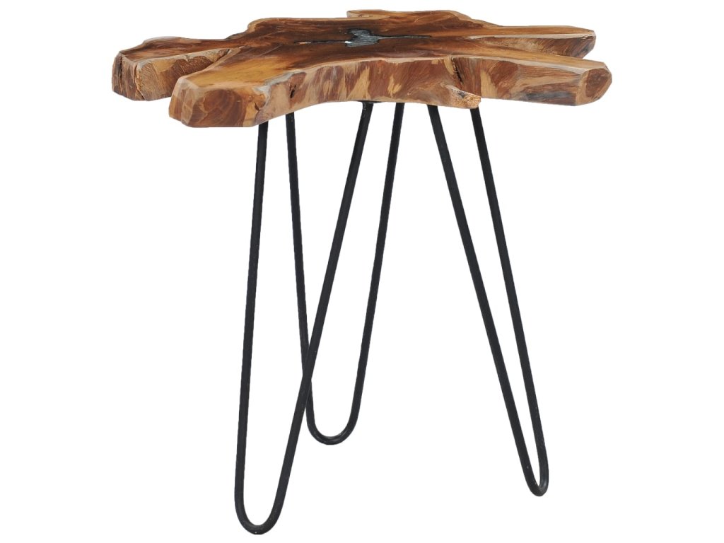 Stolní deska je ručně vyrobená a zručné řemeslné zpracování zdůrazňuje luxusní vzhled stolku. Nábytek je zhotovený z extrémně odolného teakového tvrdého dřeva, které již prošlo procesem smršťování, bylo uměle vysušené a poté jemně a do hladka obroušené. Teakové dřevo je proslulé svou výjimečnou pevností a klimatickou odolností. Jedná se tedy o skvělou volbu, pokud si chcete pořídit nábytek, který vám bude sloužit dlouhá léta. Základnu stolku tvoří odolná ocel s černým nátěrem. Sestavení je velice snadné.