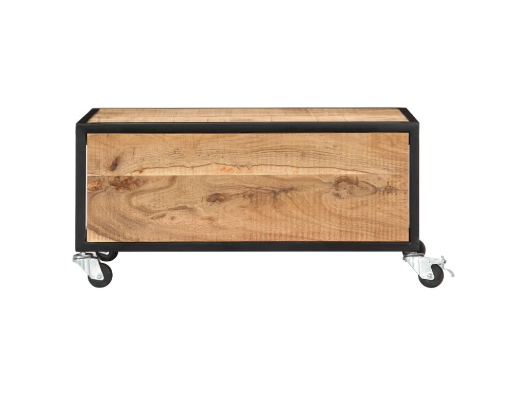 Stolek ke gauči je vyrobený z masivního akáciového dřeva, které leštěním a nalakováním získalo nádherný povrch, čemuž vděčí za svůj rafinovaný vzhled. Vzhledem k řemeslnému zpracování a elegantní struktuře dřeva je každý kus nábytku jedinečný a mírně odlišný od ostatních. Tento odkládací stolek má 1 přihrádku a poskytuje velkorysý prostor pro uložení vašich multimediálních zařízení, knih a různých dalších předmětů. Dřevěný konferenční stolek je vybaven 4 kolečky a snadno se přemisťuje.