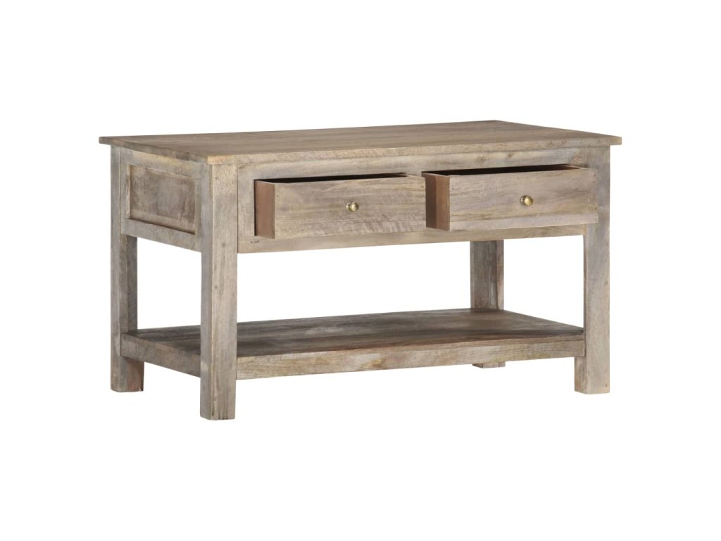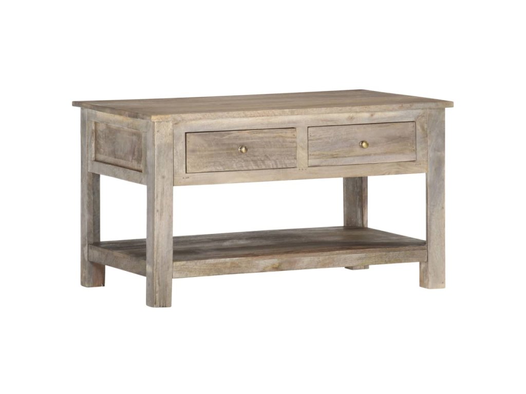 Konferenční stolek s překrásným designem je vyrobený z masivního mangovníkového dřeva, a proto je velmi pevný a odolný. Masivní horní deska nabízí stabilní a bezpečnou plochu, kam si můžete odkládat nápoje nebo vystavovat vázy, mísy s ovocem a jiné ozdoby. Ve stolku rovněž najdete 1 otevřenou poličku a 2 praktické zásuvky, které vám poskytnou spoustu prostoru k uložení vašich multimediálních zařízení, knížek a nejrůznějších další věcí. Každá fáze výrobního procesu se provádí s největší péčí, ať už se jedná o leštění, natírání anebo lakování.