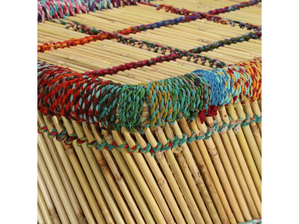 - Materiál: bambus + dekorativní vplétané detaily ve stylu chindi + práškově lakovaný železný rám
