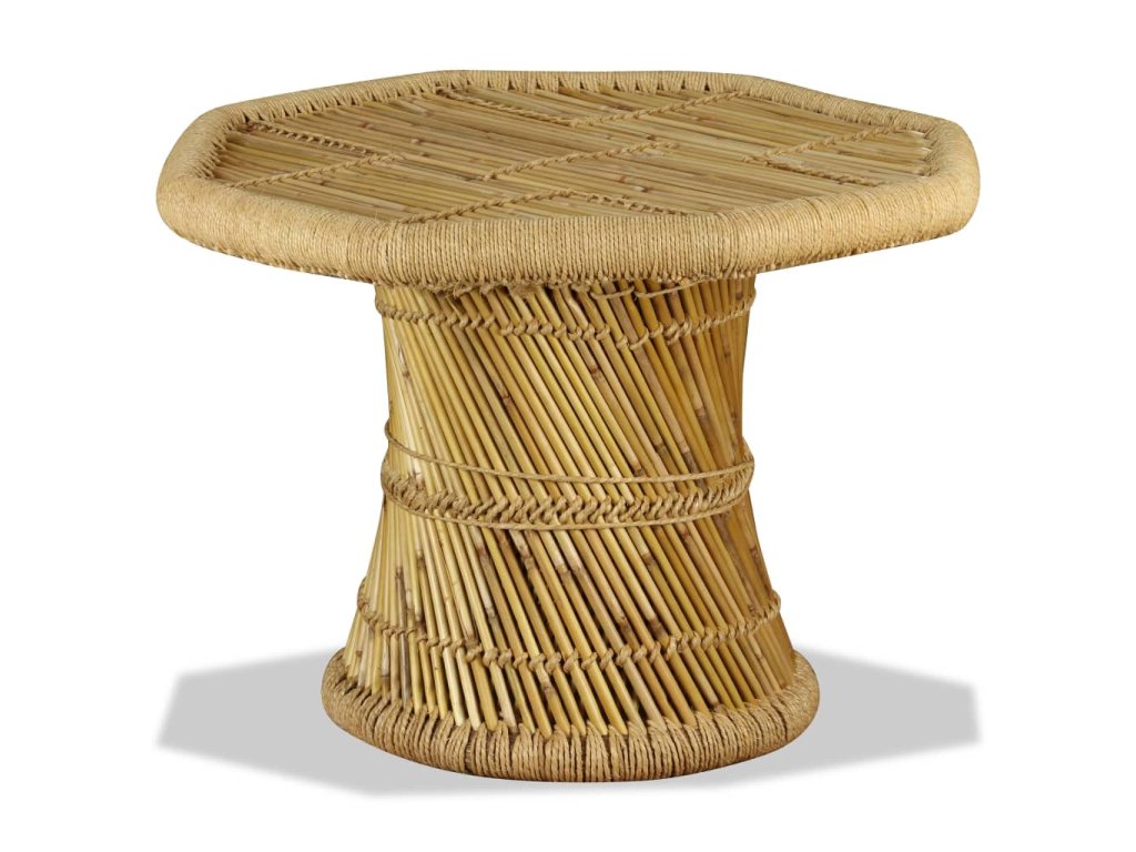 Tento konferenční stolek je ručně vyrobený z přírodního bambusu a juty, takže je robustní a odolný. Na jeho osmihrannou desku si můžete v klidu odložit knihy, notebooky, květináče atd. Navíc se také snadno čistí.