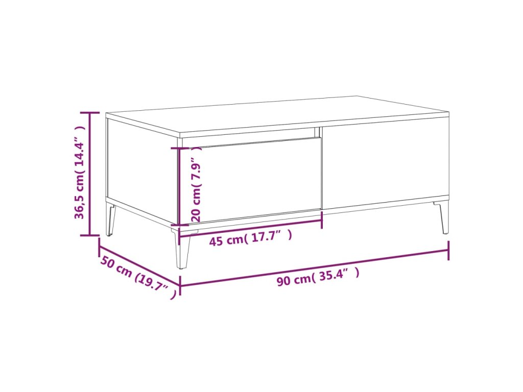 Konferenční stolek bílý 90 x 50 x 36,5 cm kompozitní dřevo 821116