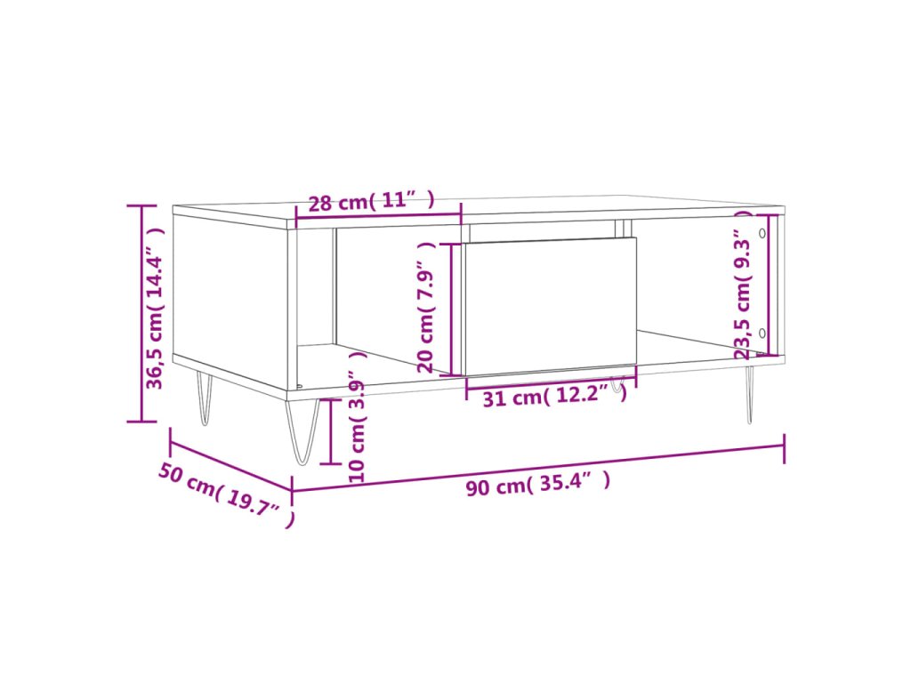 Konferenční stolek bílý 90 x 50 x 36,5 cm kompozitní dřevo 830588